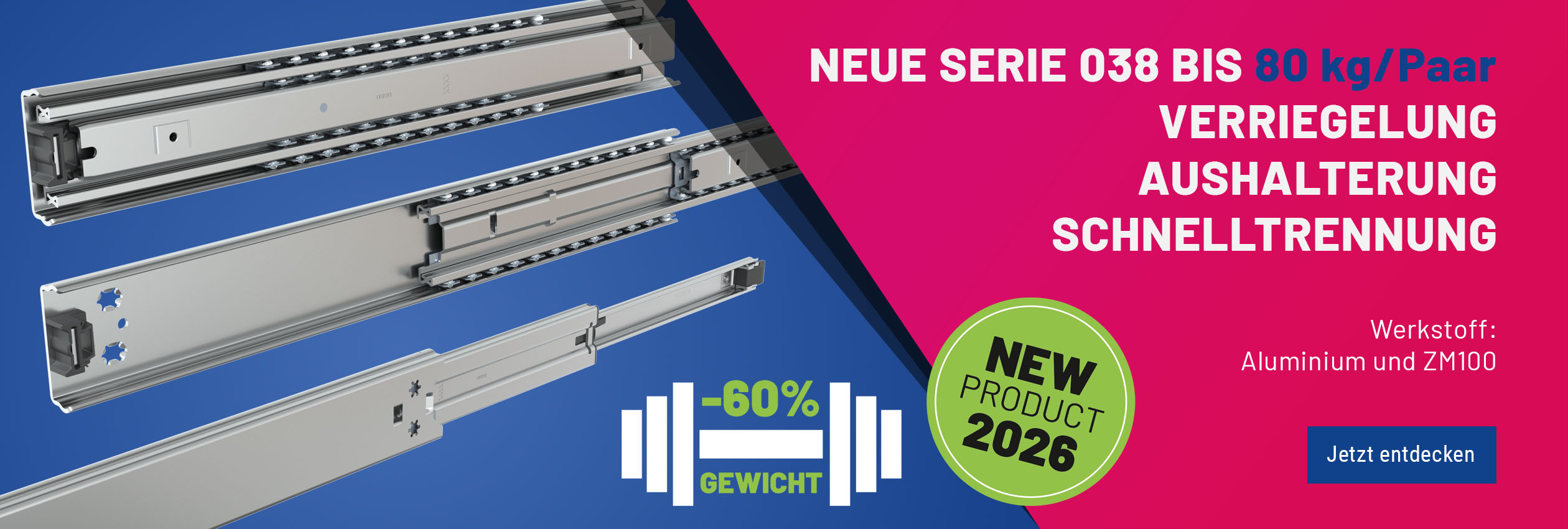 Teleskopschiene Vollauszug 038 | bis 100 kg | AIR MOTION | Schock Metall CLASSIC