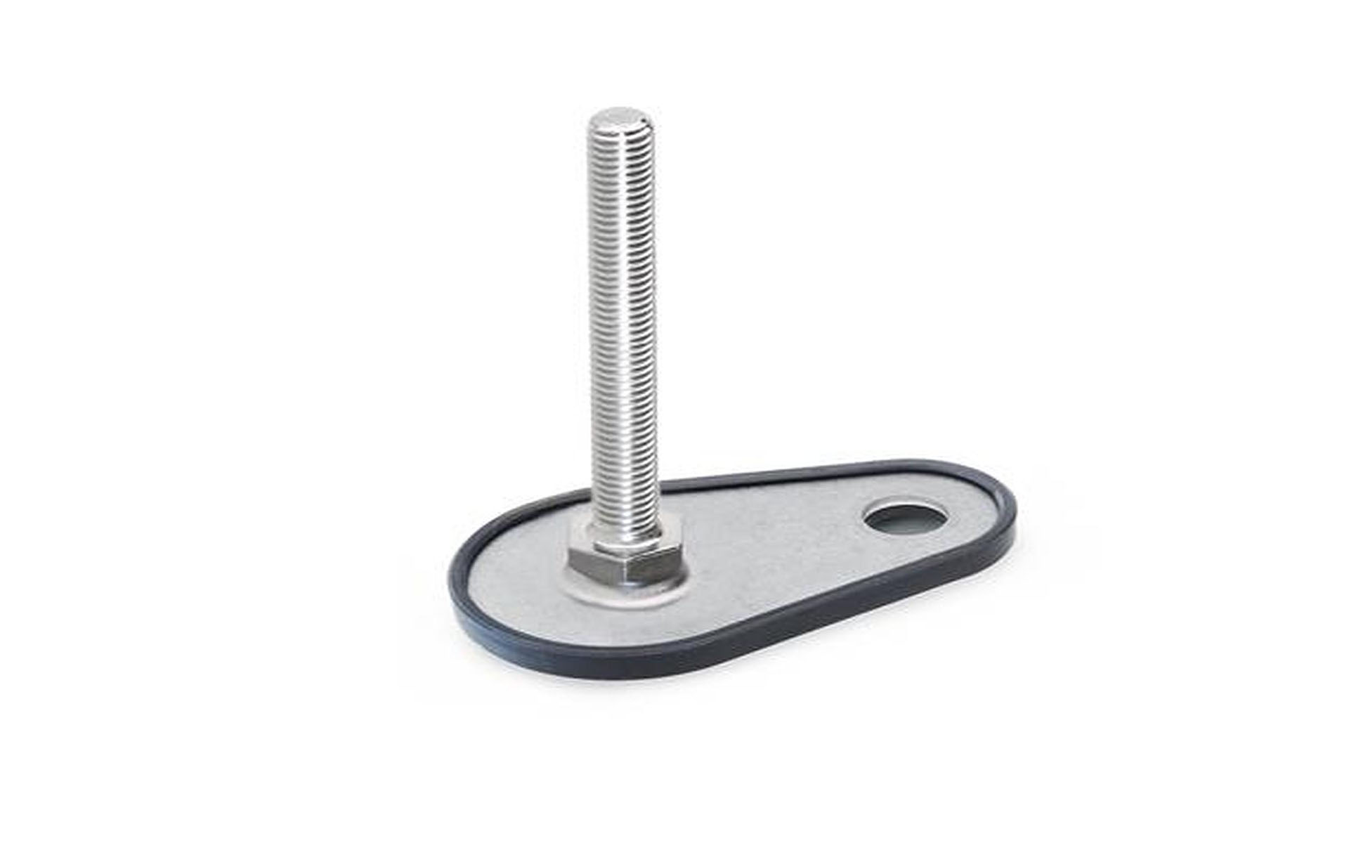 Edelstahl-Stellfüße, Außensechkant unten, mit Befestigungslasche, Tropfenform | 50 mm | D1 - mit Gummiauflage, aufgeklipst, schwarz | M8 | 50 mm | ohne Mutter | 05001015010