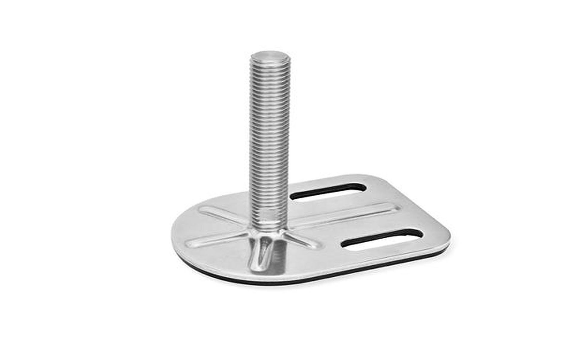 Edelstahl-Stellfüße, Schlüsselfläche unten, mit Befestigungslasche, Rechteckform | G3 - mit Gummiauflage, aufvulkanisiert, schwarz, mit 2 Langlöchern | M24 | 125 mm | mit Mutter | 05001217068