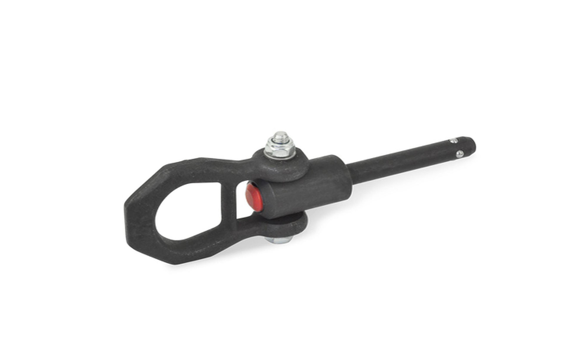 Kugeltragbolzen sind schnell und einfach einsetzbare Tragelemente. Durch Drücken des roten Aluminiumknopfs wird die Verriegelung der Sperrkugeln aufgehoben und der Tragbolzen kann aus der Aufnahmebohrung heraus bzw. hinein bewegt werden. Der Schäkel ist min. 180° schwenkbar, wobei ein Sicherungssteg vor unbeabsichtigtem Betätigen schützt.