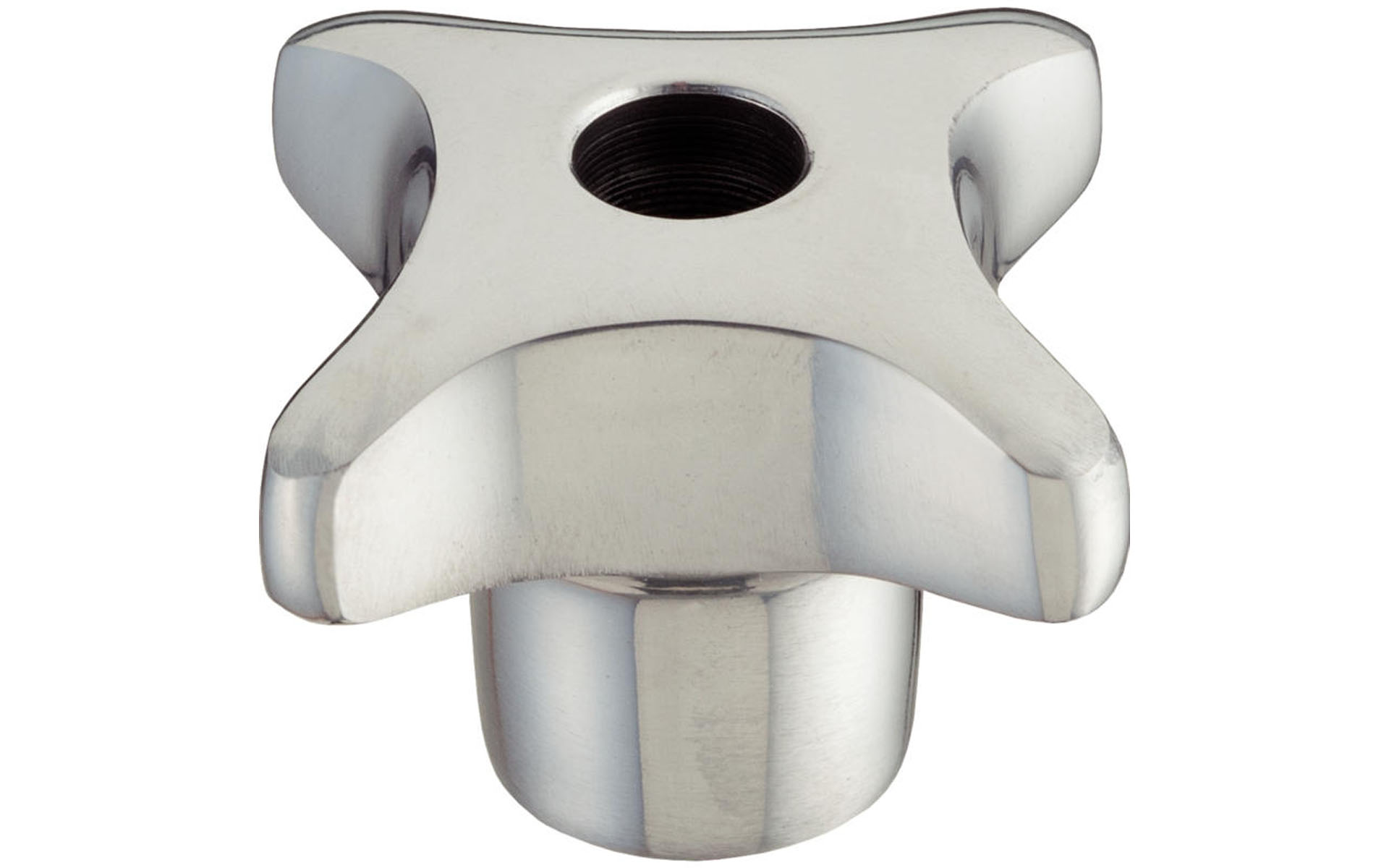 Produktinformationen "Kreuzgriffe, DIN 6335 Leichtmetall/mit Gewinde, aufgebohrt, Form D, d1=80mm / poliert"
